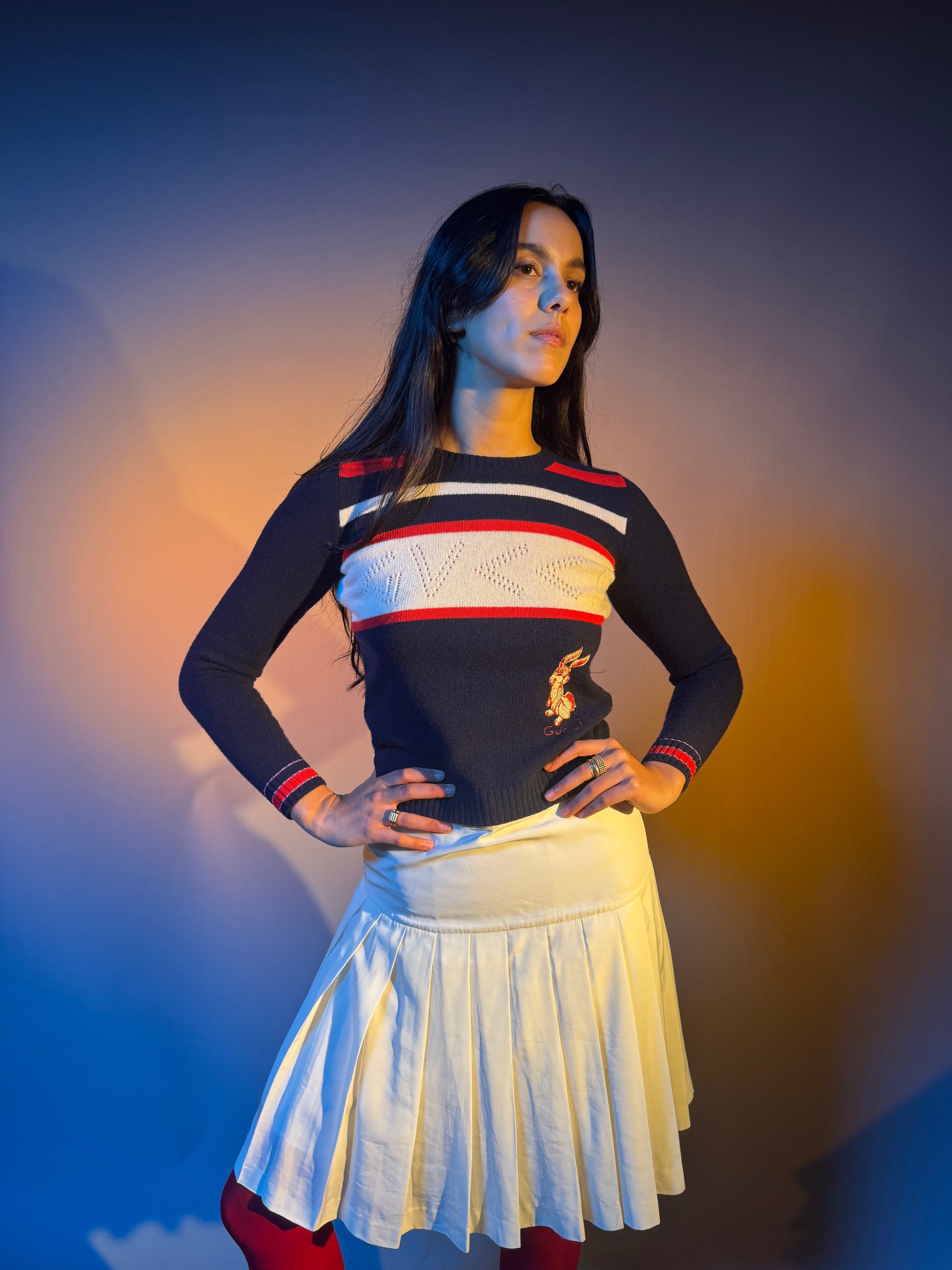 This jumper is a blend of preppy sportswear and eccentric luxury, a hallmark of Guccis FW collections from that era. The rabbit and "loved" elements were recurring themes in runway looks and seasonal campaigns , often used to mix nostalgia with modern maximalism.