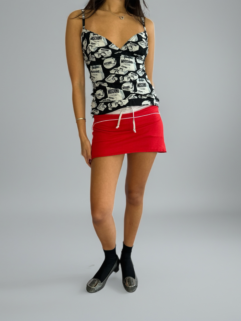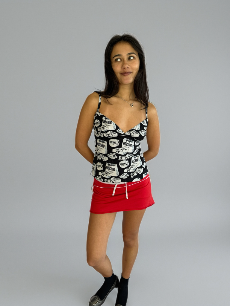 Featuring bold Couture! lettering or iconic Moschino logos (design-dependent), it transforms a simple silhouette into a standout staple. Whether layered under a blazer or worn solo with denim, this singlet brings runway energy to everyday style.