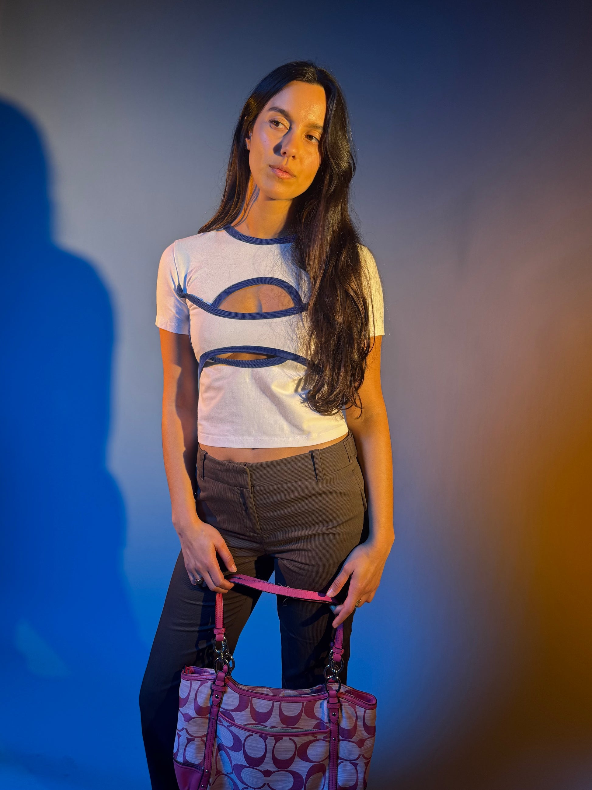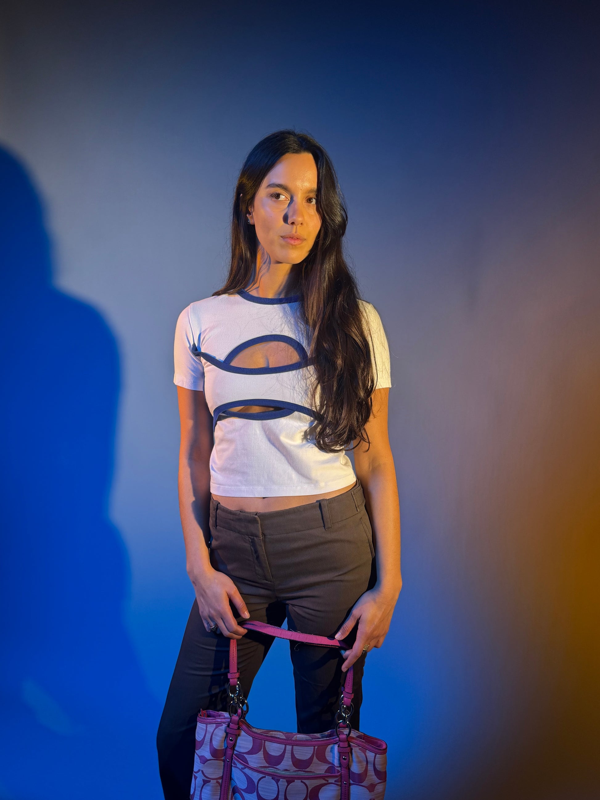 The Baby tee features centre cut out and signature Spitsubishi chest panel with contrast binding.